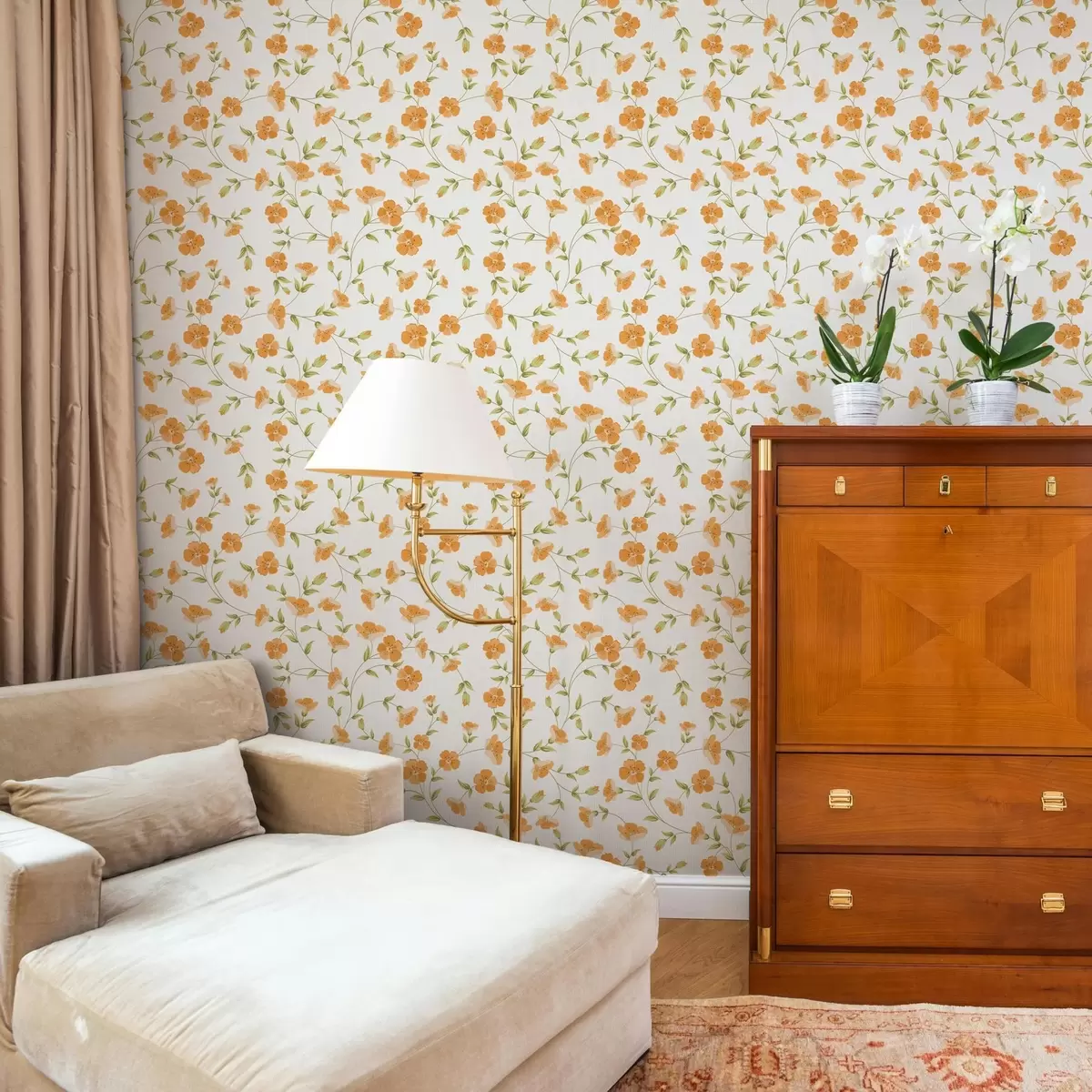 Papel de parede Flores laranja sobre fundo branco Nr. a00015