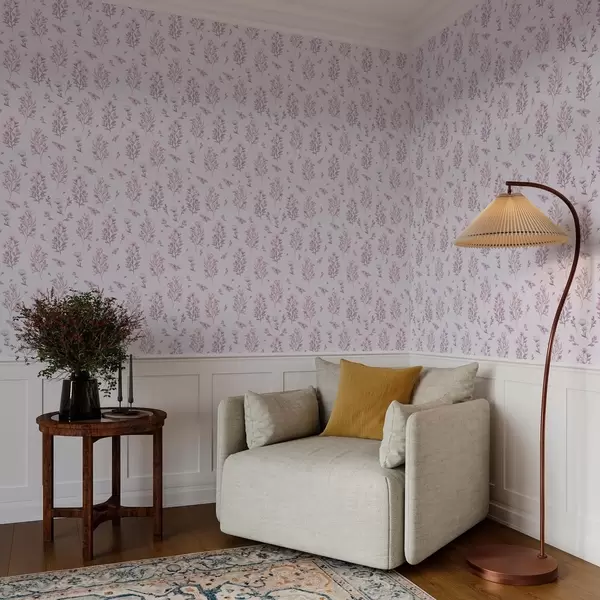 Papel de parede Flores delicadas com hastes em um fundo branco Nr. a00016