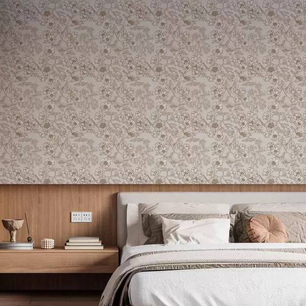 Papel de parede Pássaros pintados em galhos e flores Nr. a00017