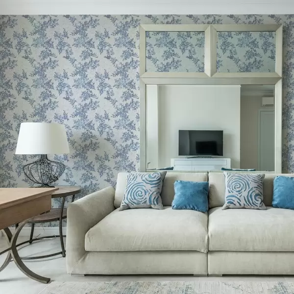 Papel de parede Flores e folhas delicadas nas cores azul e azul em um fundo claro Nr. a00027
