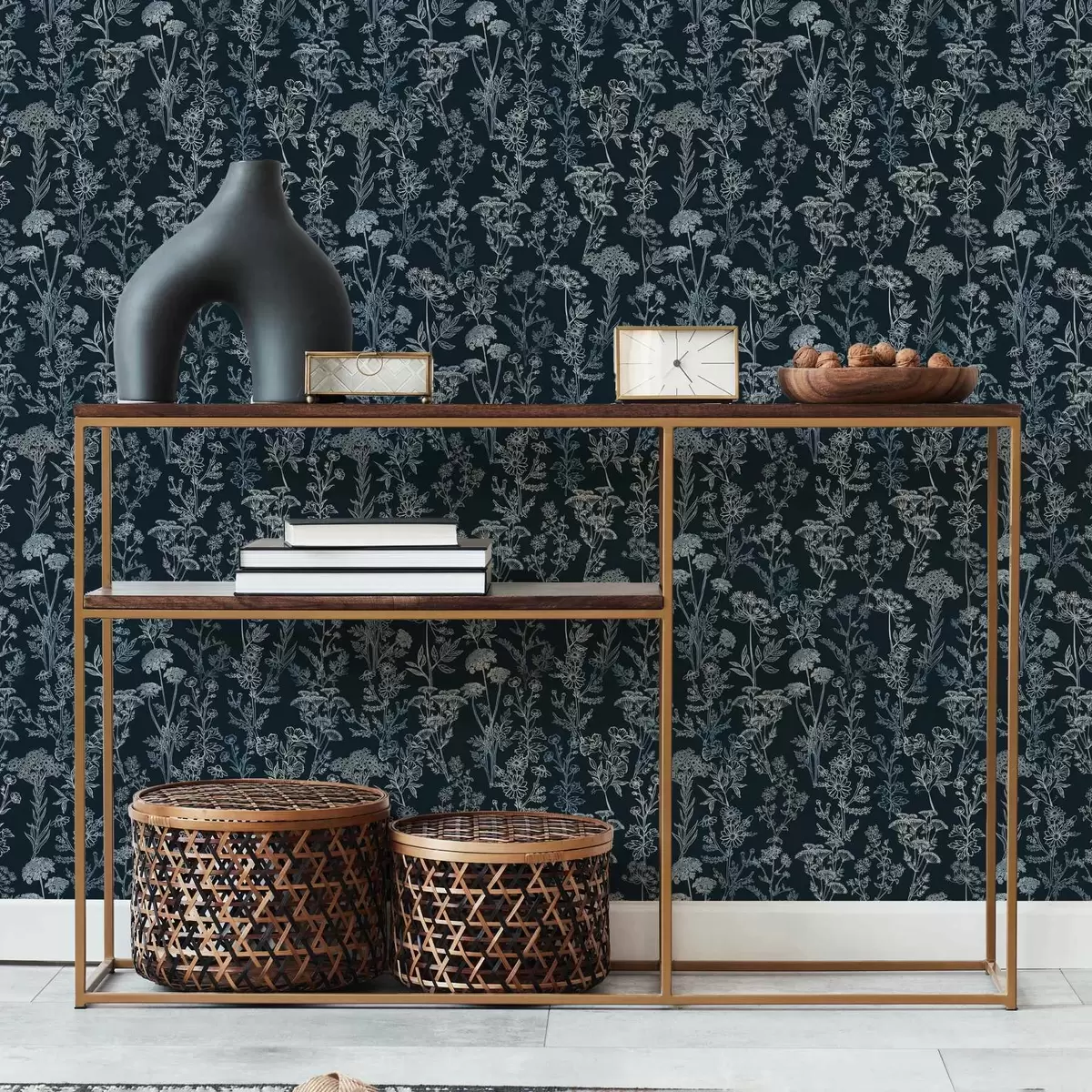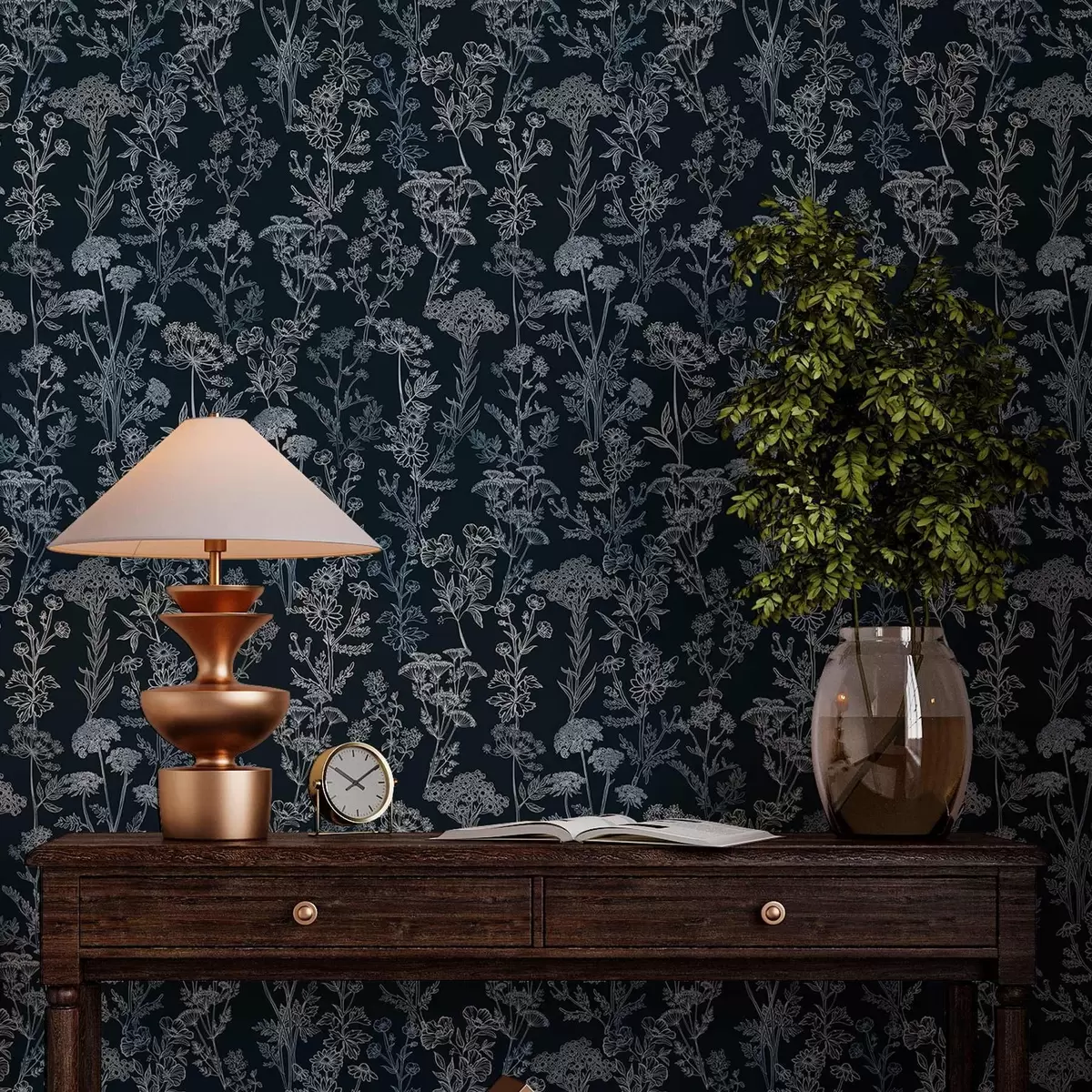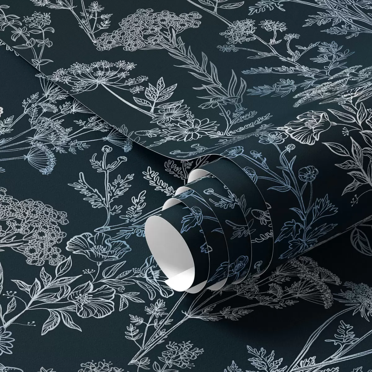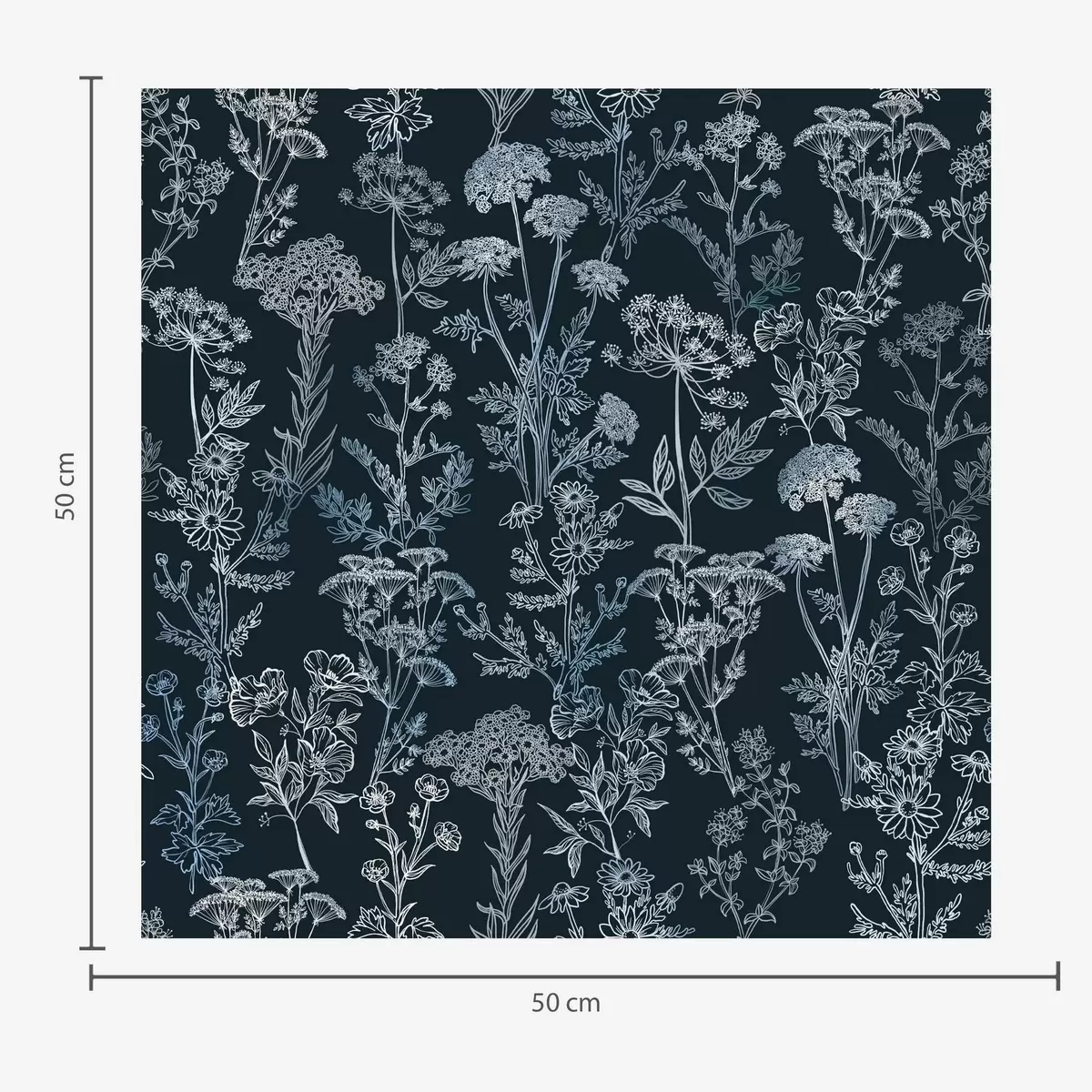 Papel de parede Plantas brancas e azuis em um fundo escuro a00029