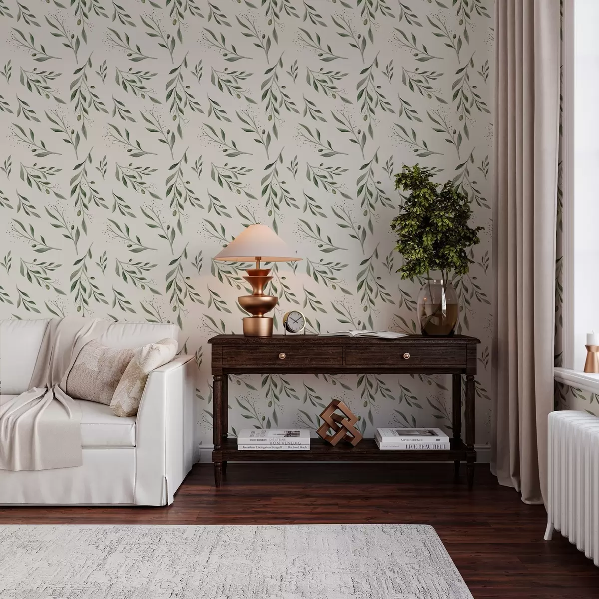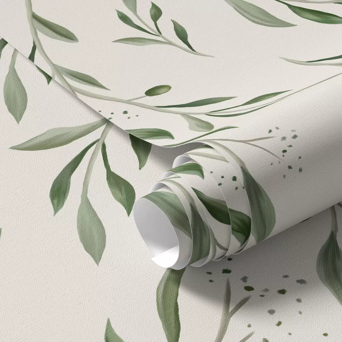 Papel de parede Delicados ramos de oliveira verdes a00030