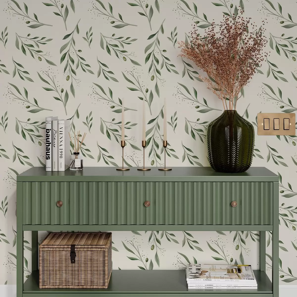 Papel de parede Delicados ramos de oliveira verdes Nr. a00030