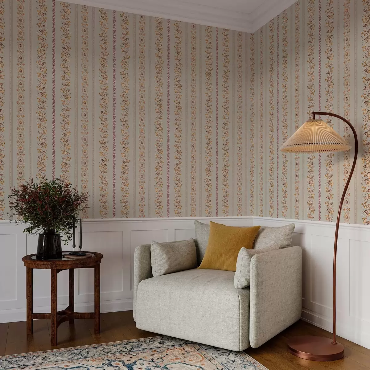 Papel de parede Ornamento geométrico delicado com flores e plantas Nr. a00031