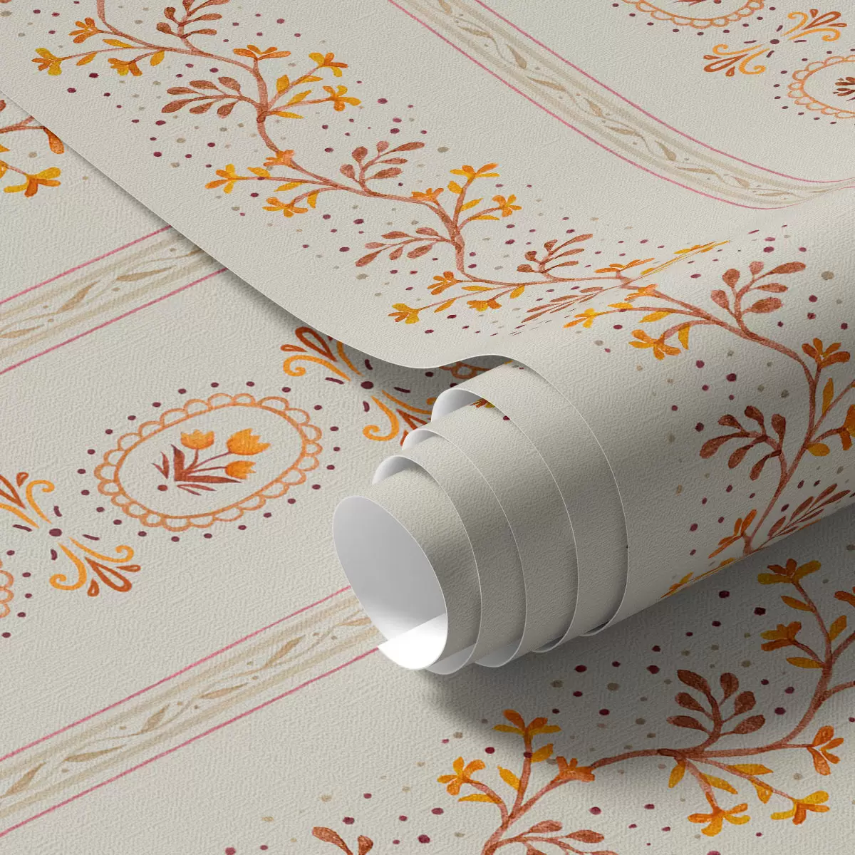 Papel de parede Ornamento geométrico delicado com flores e plantas Nr. a00031