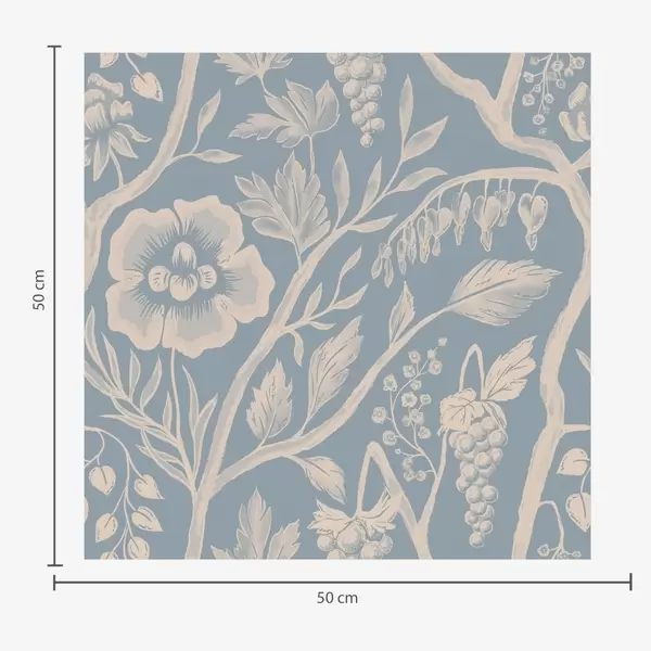 Papel de parede Flores brancas, caules e uvas em um fundo azul Nr. a00044