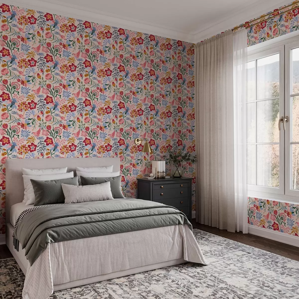 Papel de parede Composição brilhante de flores e bagas com papagaios Nr. a00046