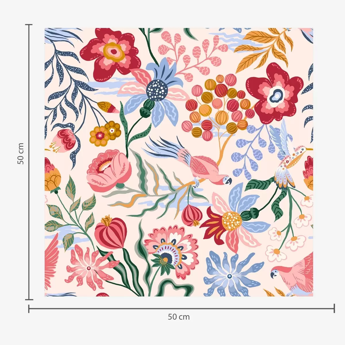 Papel de parede Composição brilhante de flores e bagas com papagaios Nr. a00046
