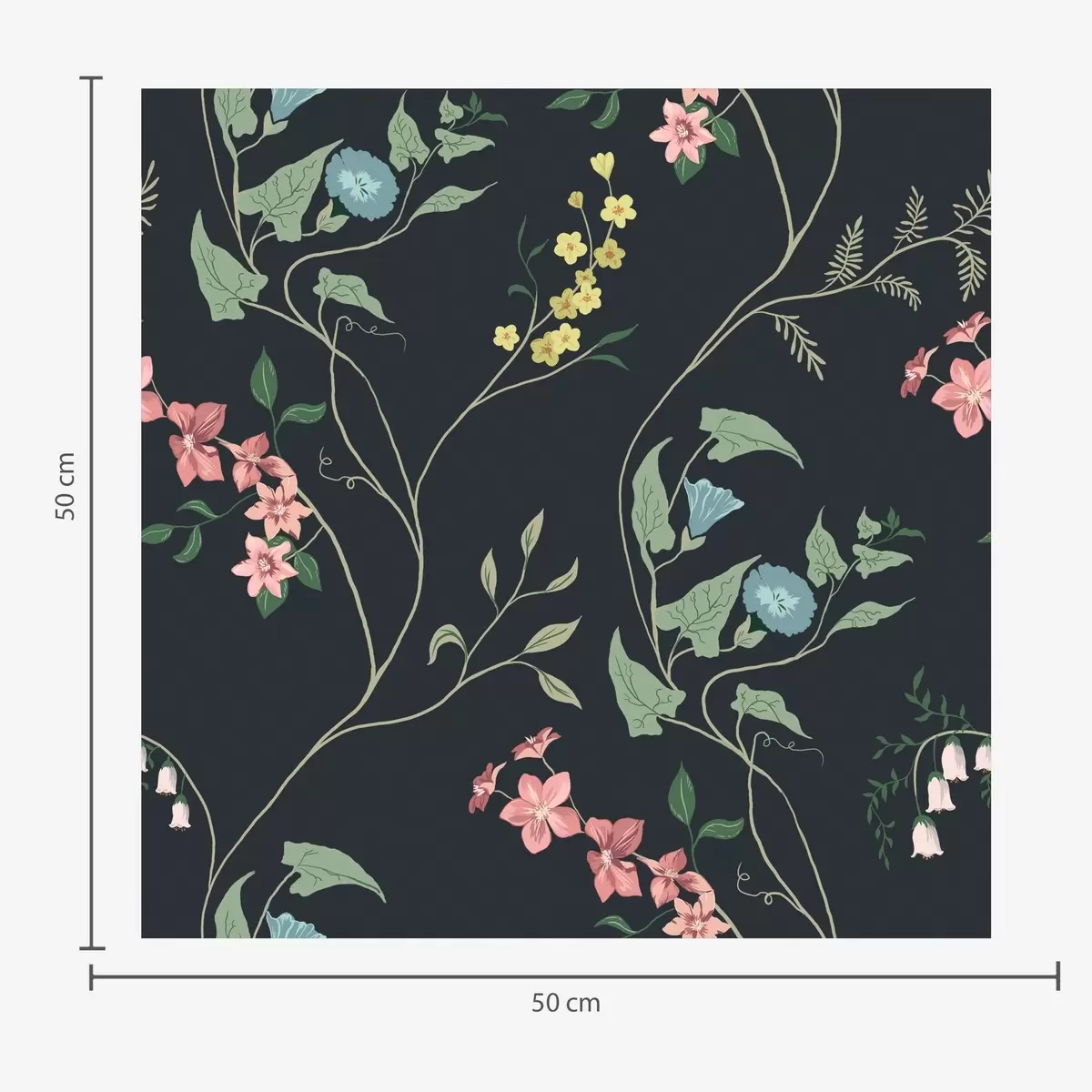 Papel de parede Flores, folhas e caules em um fundo escuro Nr. a00047
