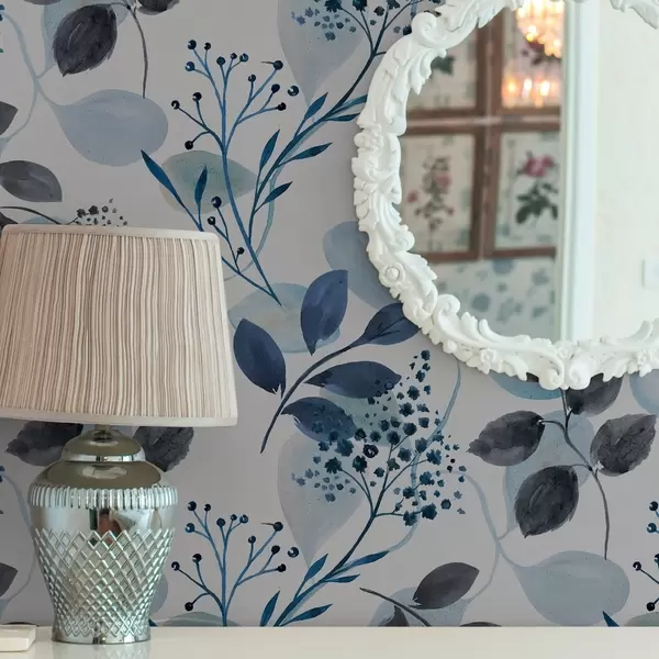 Papel de parede Folhas de outono em estilo aquarela em tons de azul Nr. a00048v2
