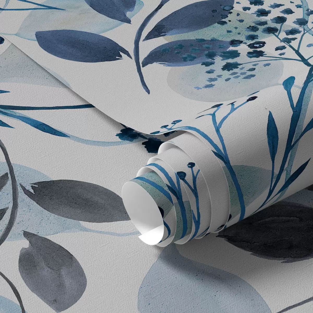 Papel de parede Folhas de outono em estilo aquarela em tons de azul Nr. a00048v2