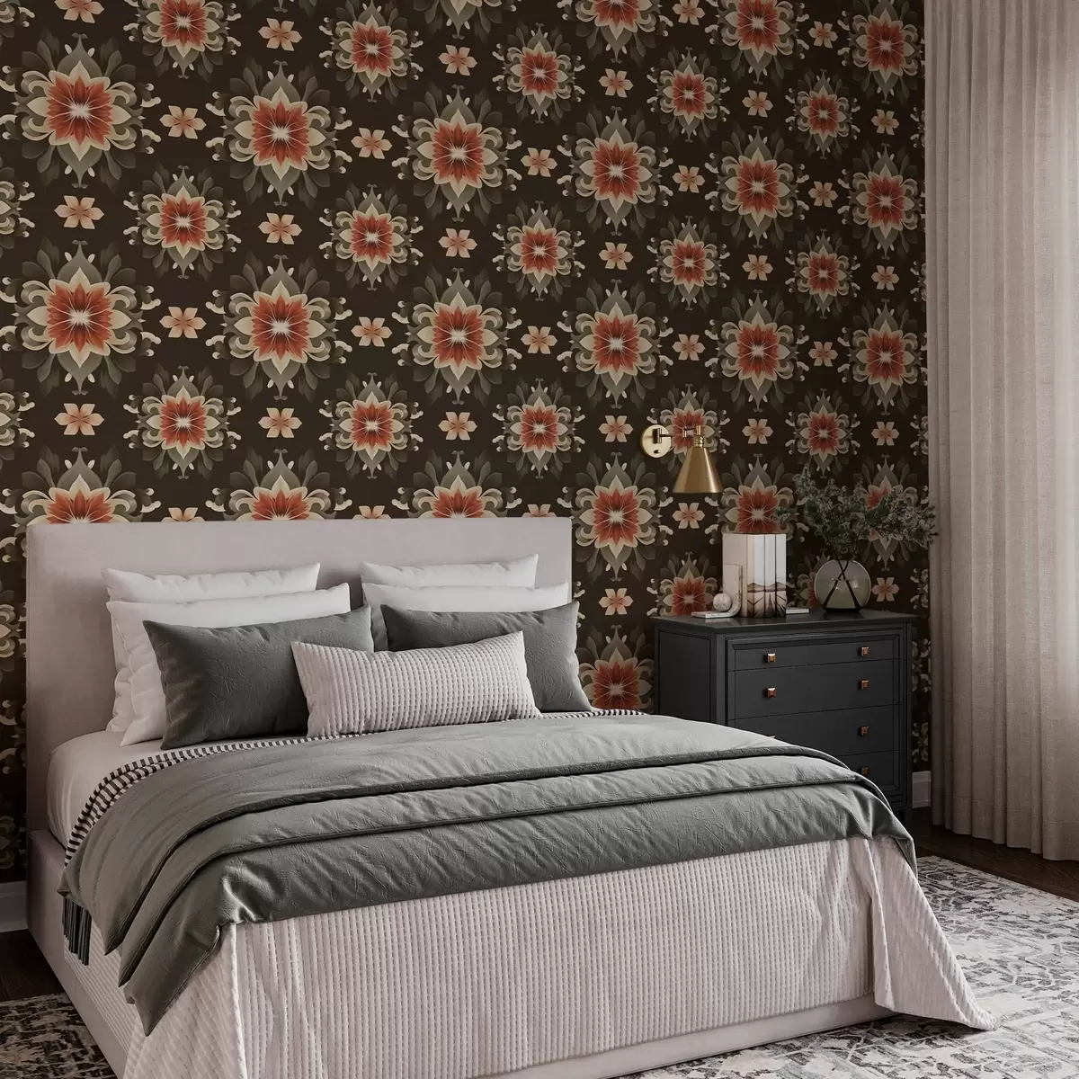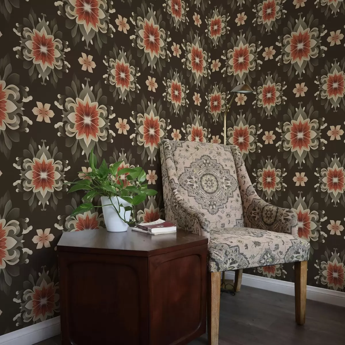 Papel de parede Padrão floral abstrato em fundo escuro Nr. a00069