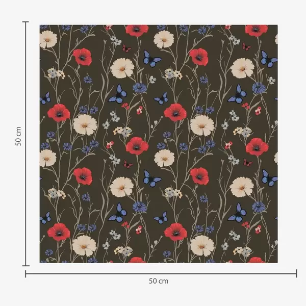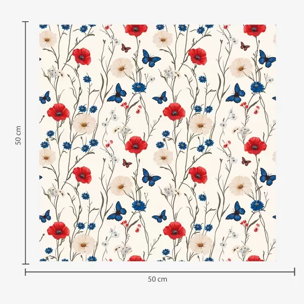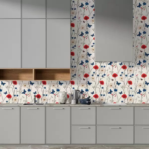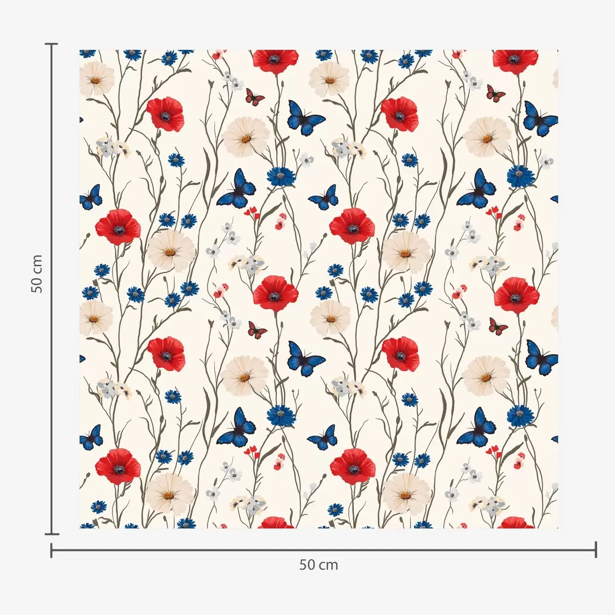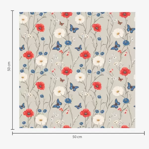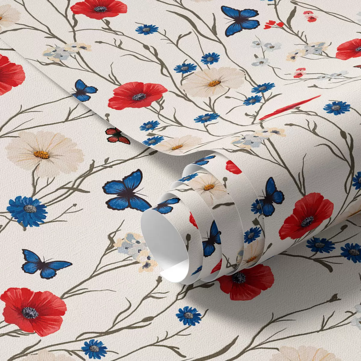 Papel de parede Papoulas, margaridas e borboletas em um fundo branco Nr. a00072