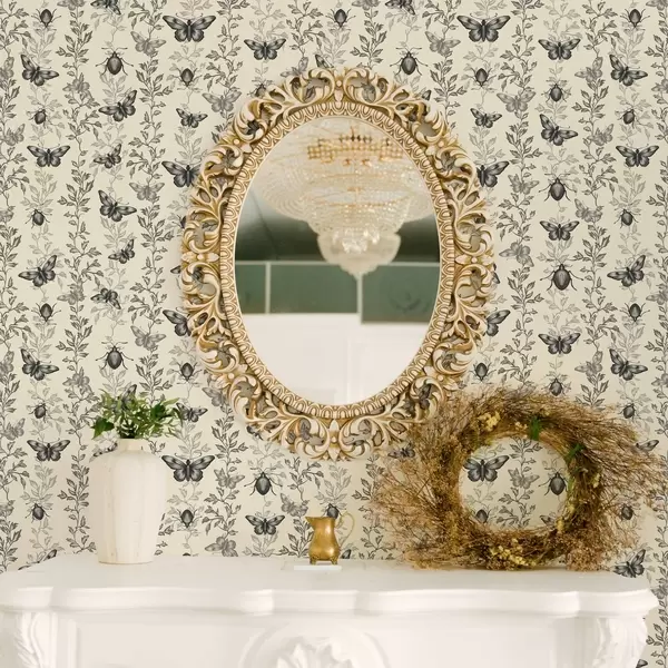 Papel de parede Composição com borboletas, folhas e insetos em um fundo claro a00073v2