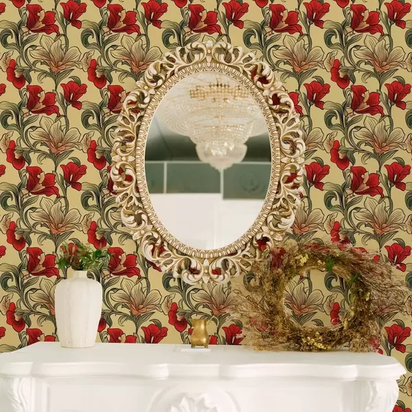 Papel de parede Caules brilhantes e retorcidos com folhas e flores vermelhas Nr. a00075