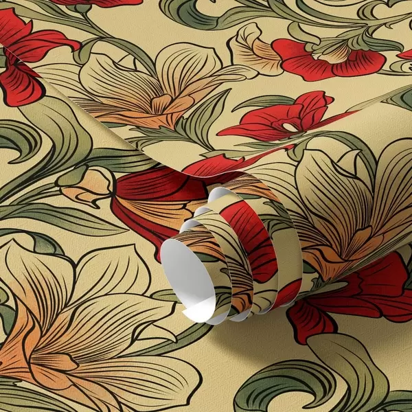 Papel de parede Caules brilhantes e retorcidos com folhas e flores vermelhas Nr. a00075