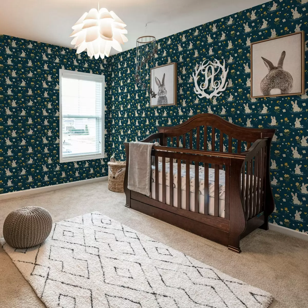 Papel de parede Coelhos na grama e flores em um fundo escuro Nr. a00080
