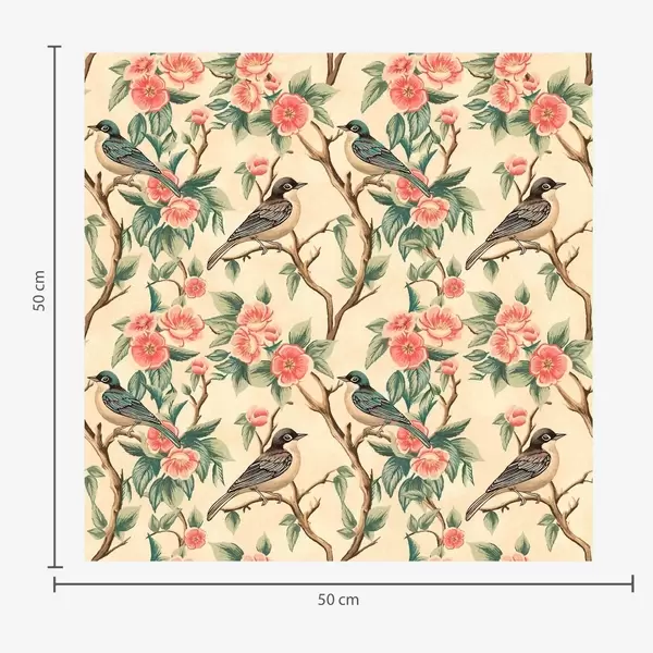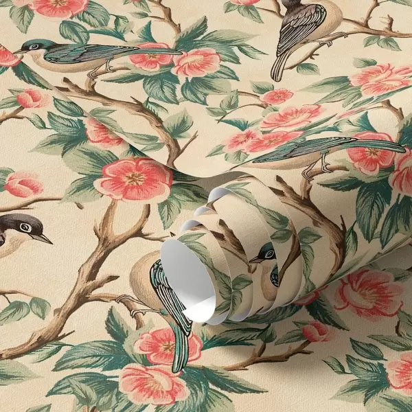 Papel de parede Pequenos pássaros em galhos com flores em um fundo claro Nr. a00093