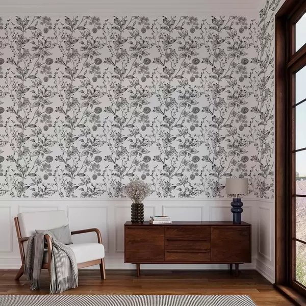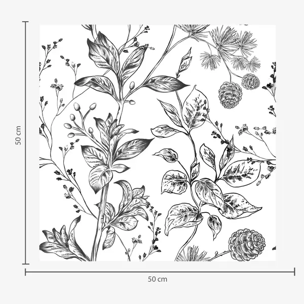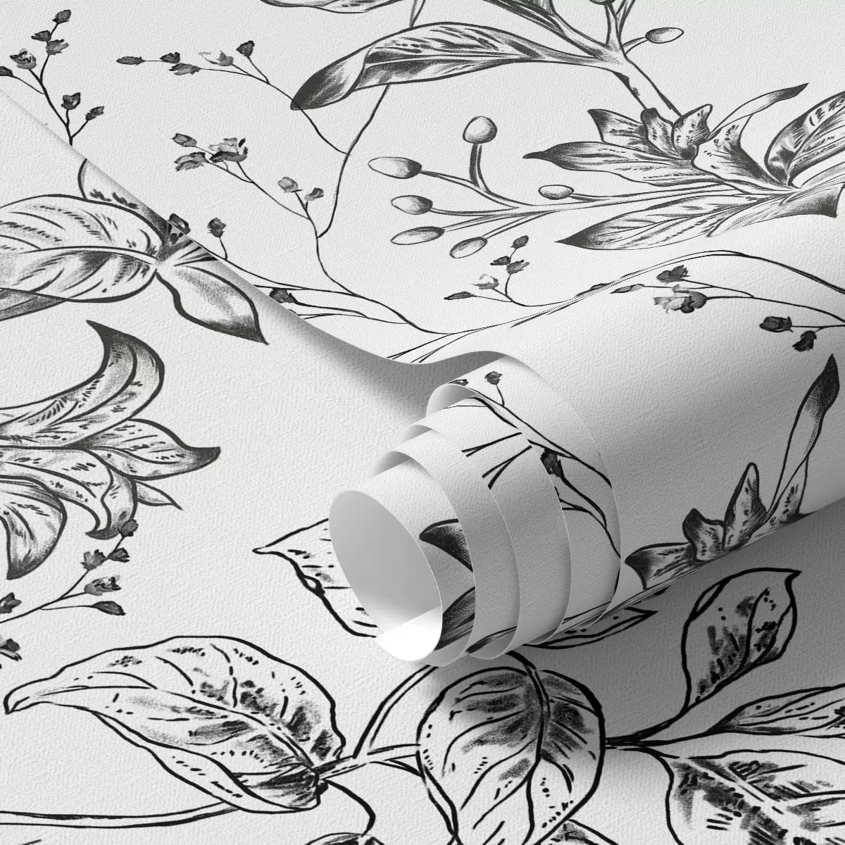 Papel de parede Ramos em preto e branco com folhas em um fundo branco Nr. a00098v1