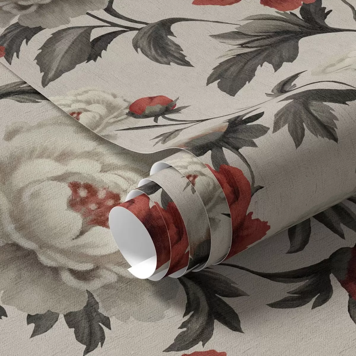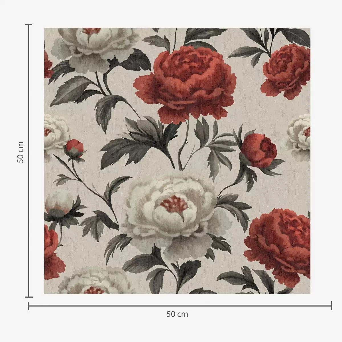 Papel de parede Peônias em estilo retrô em um fundo bege Nr. a00107