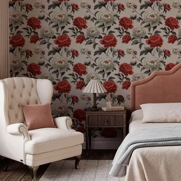 Papel de parede Peônias em estilo retrô em um fundo bege Nr. a00107