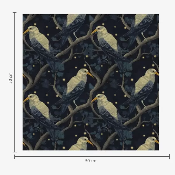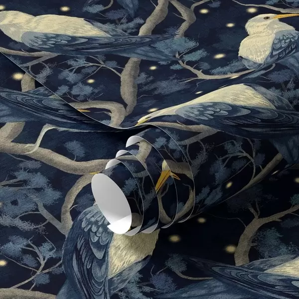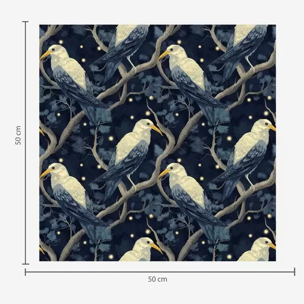 Papel de parede Pássaros brancos em galhos entre vagalumes brilhantes na floresta noturna Nr. a00109