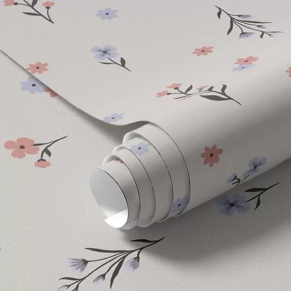Papel de parede Pequenas flores em tons de rosa pálido e azul em um fundo creme Nr. a00110