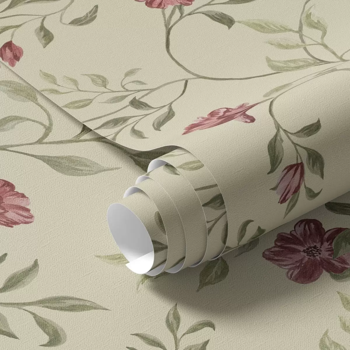 Papel de parede Flores e botões vermelhos em um fundo claro Nr. a00114