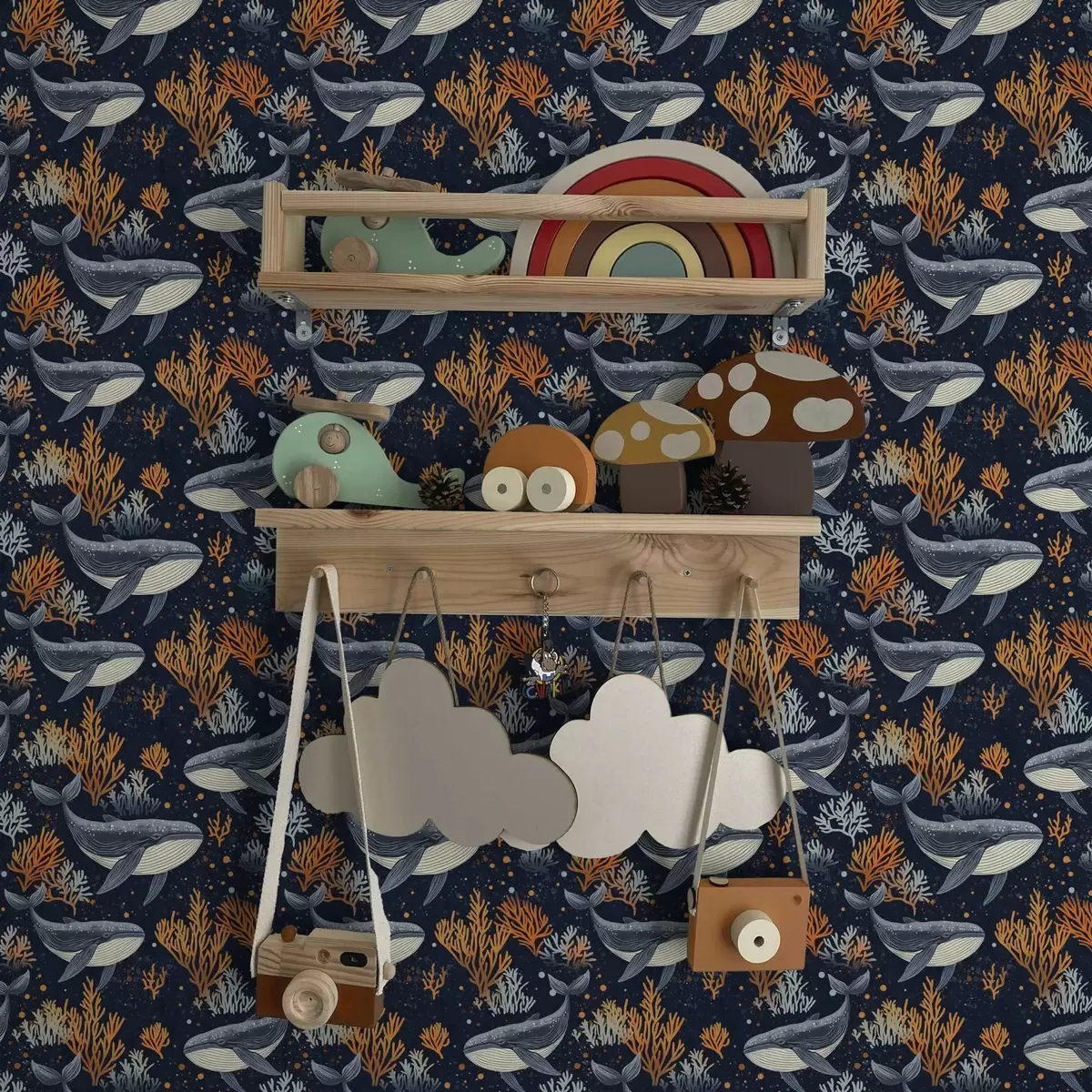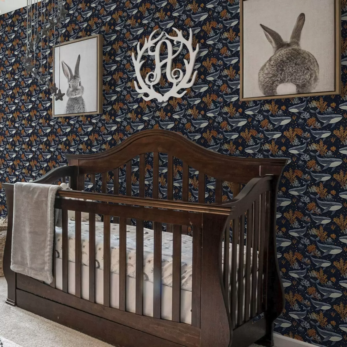 Papel de parede Baleias e corais em um fundo escuro Nr. a00116