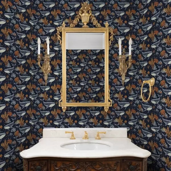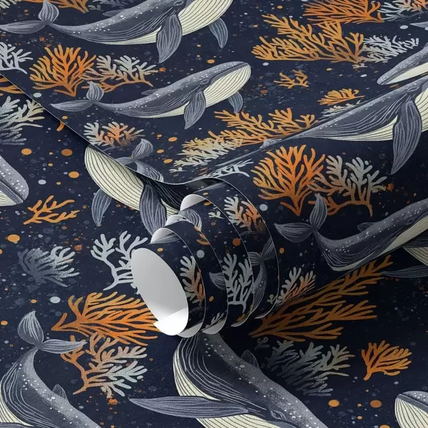 Papel de parede Baleias e corais em um fundo escuro Nr. a00116
