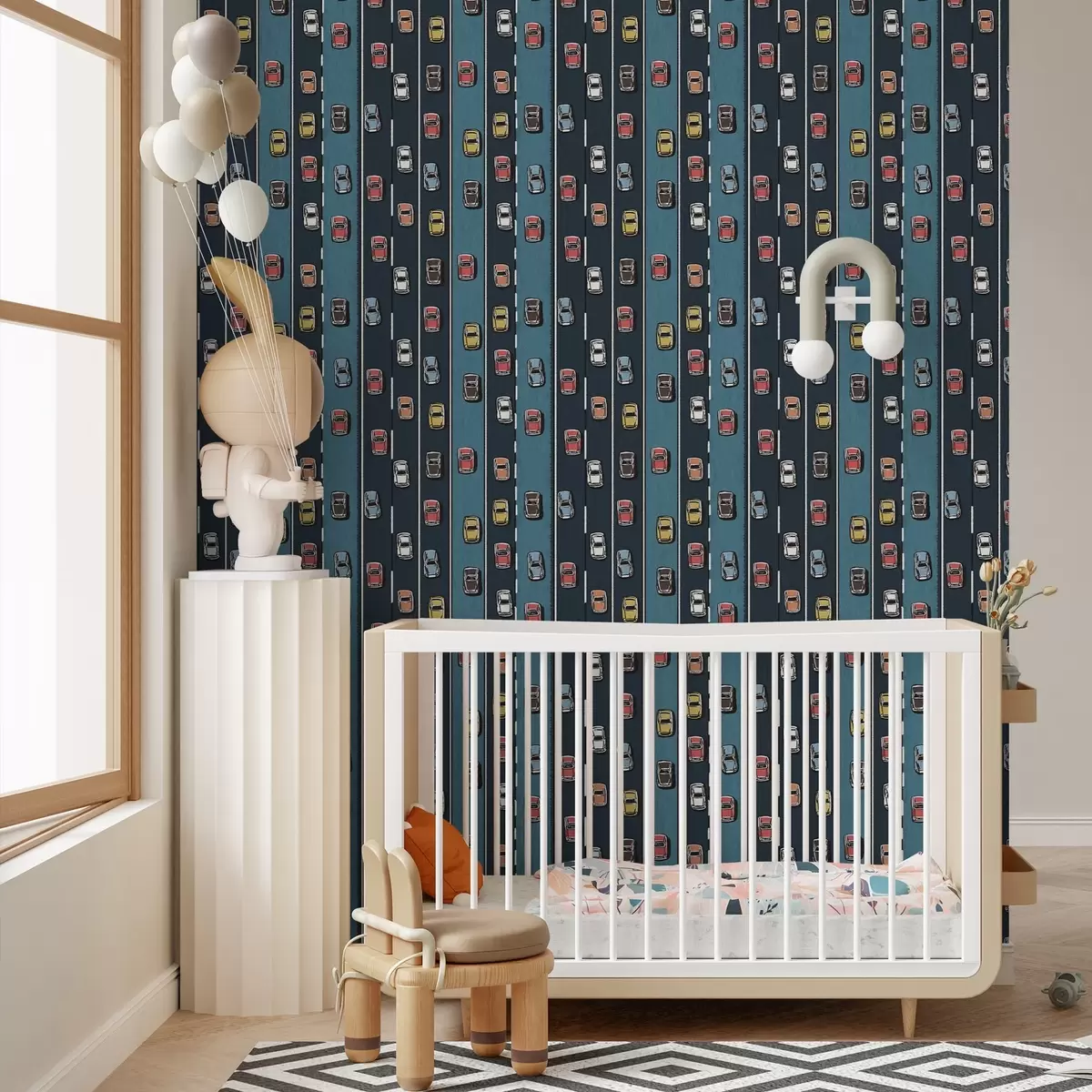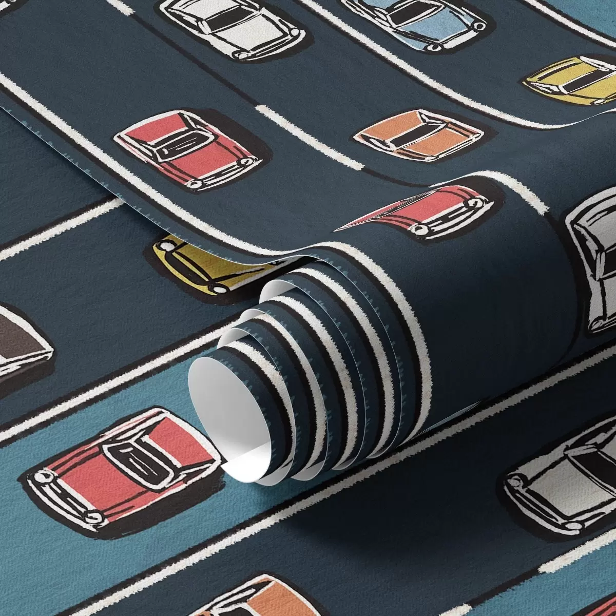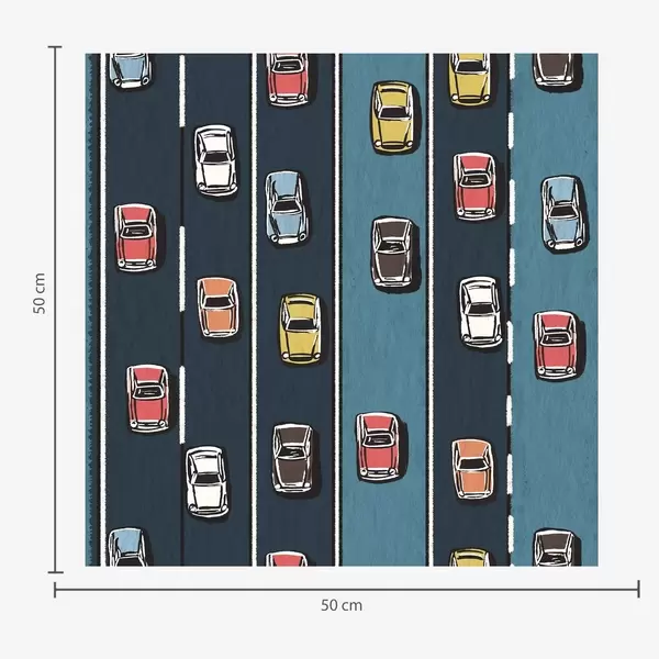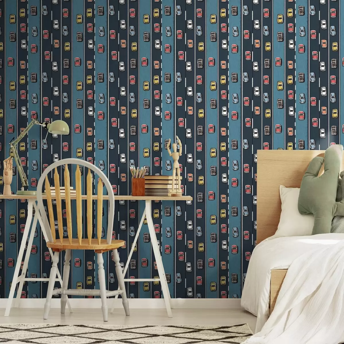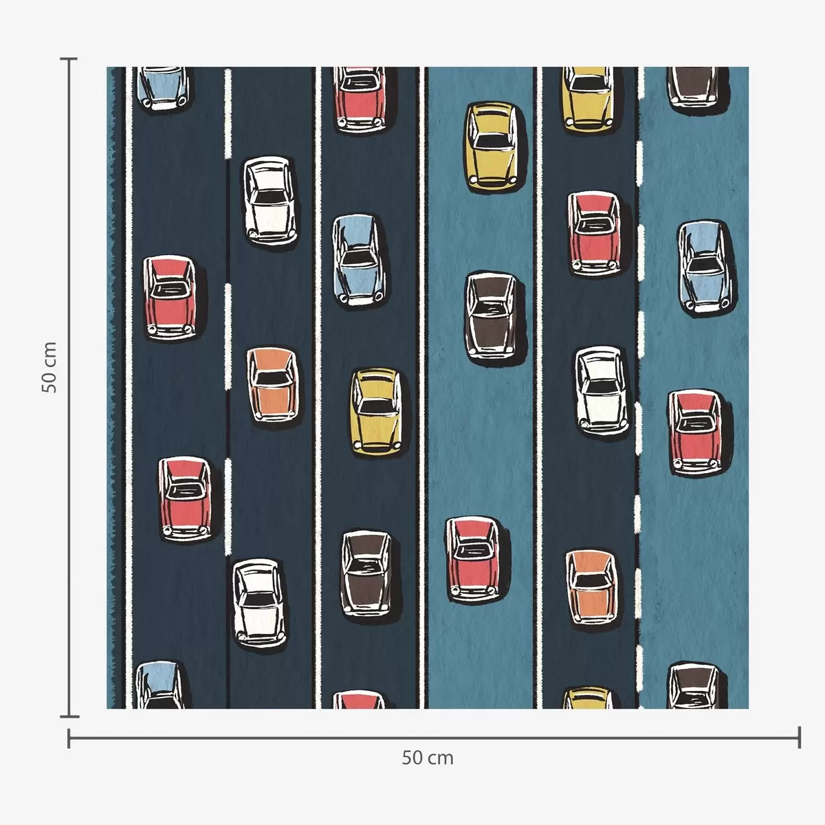 Papel de parede Carro retrô em uma estrada azul-marinho no estilo dos anos 60 Nr. a00118