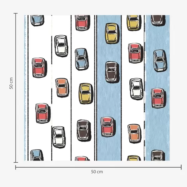 Impresso sob encomenda e entregue em rolos de até 50 cm de largura.