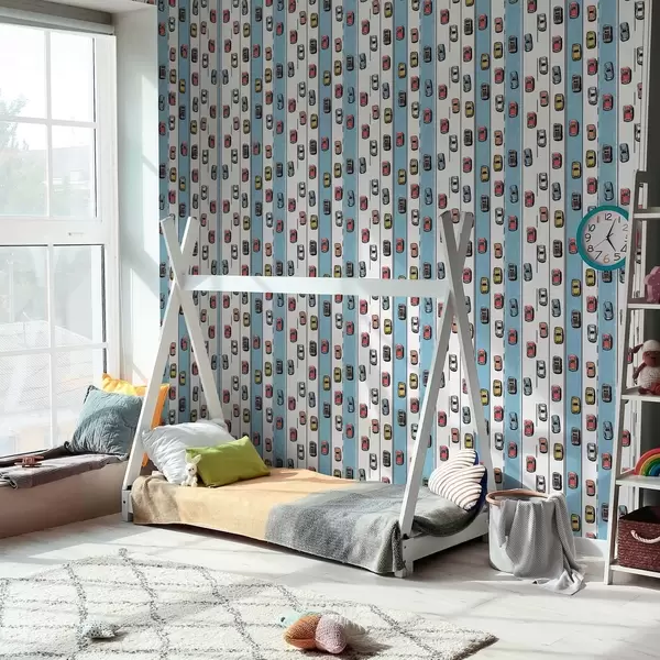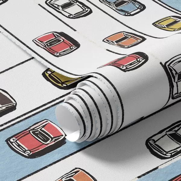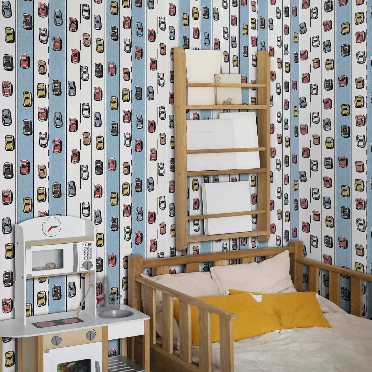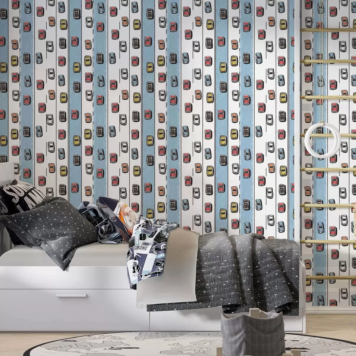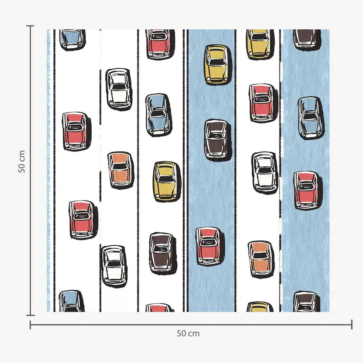 Papel de parede Carro retrô em uma estrada branca e azul no estilo dos anos 60 Nr. a00118v2
