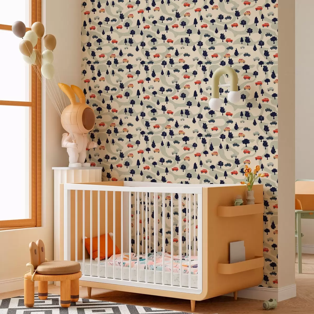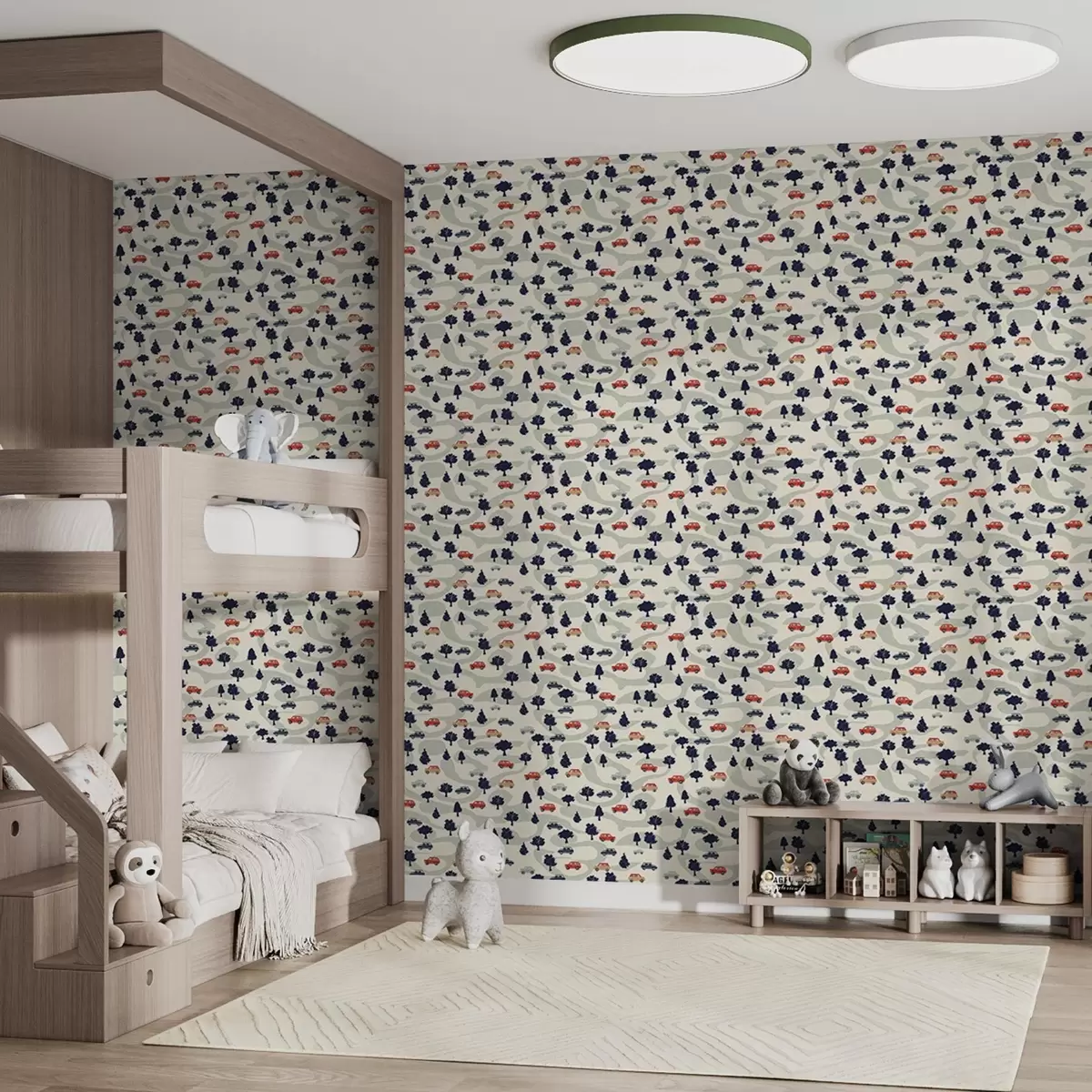Papel de parede Carros engraçados entre as árvores em um fundo creme Nr. a00119