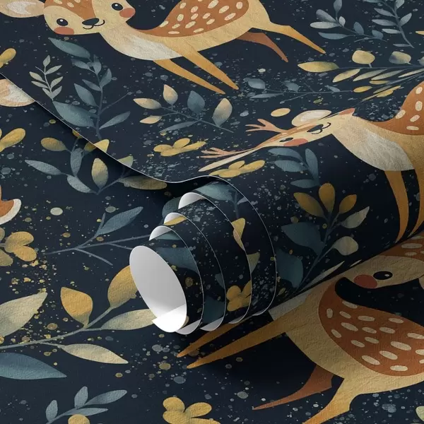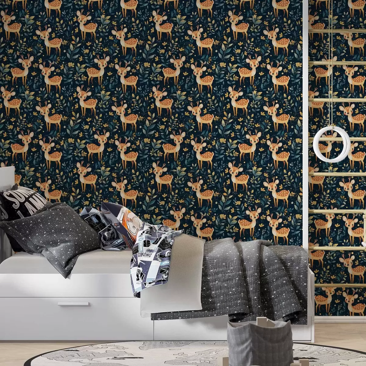 Papel de parede Fawn em uma floresta escura com folhas amarelas Nr. a00124