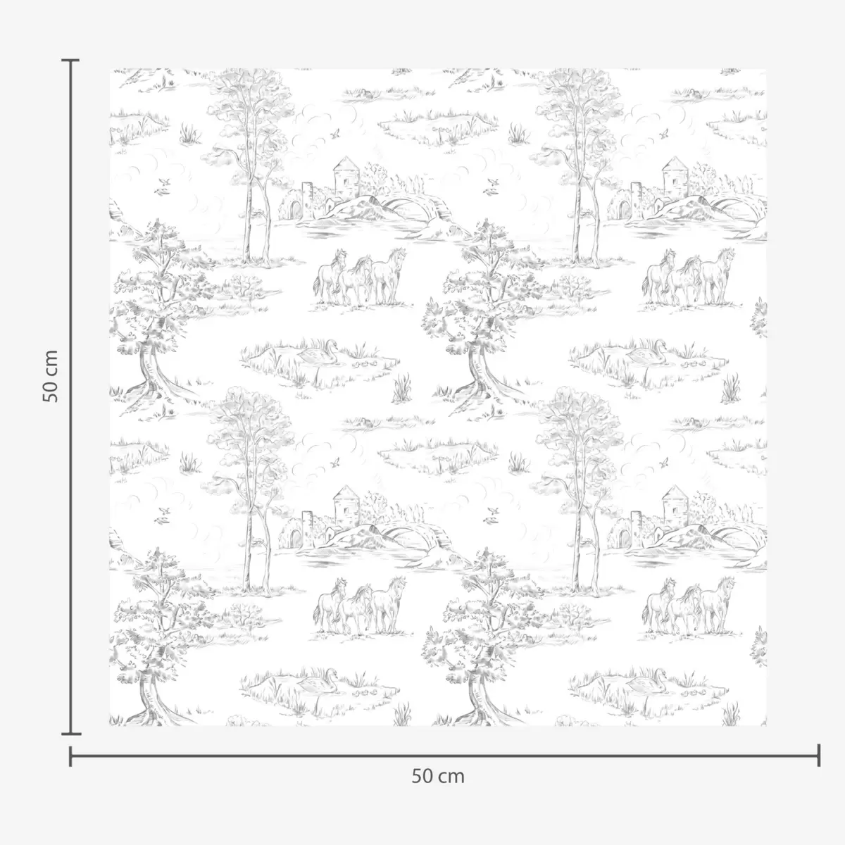 Papel de parede Paisagem com cavalos em estilo cinza e branco Nr. a00133v2