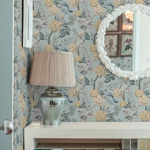 Papel de parede Flores e pássaros em um fundo azul Nr. a00134