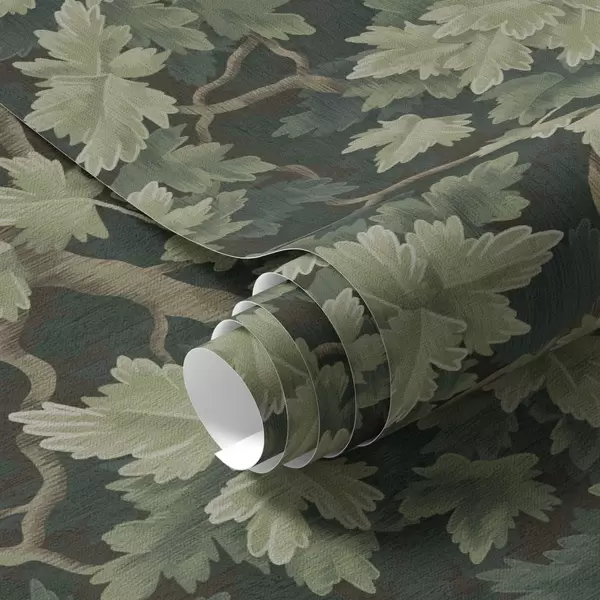 Papel de parede Folhas de carvalho em um fundo verde Nr. a00151