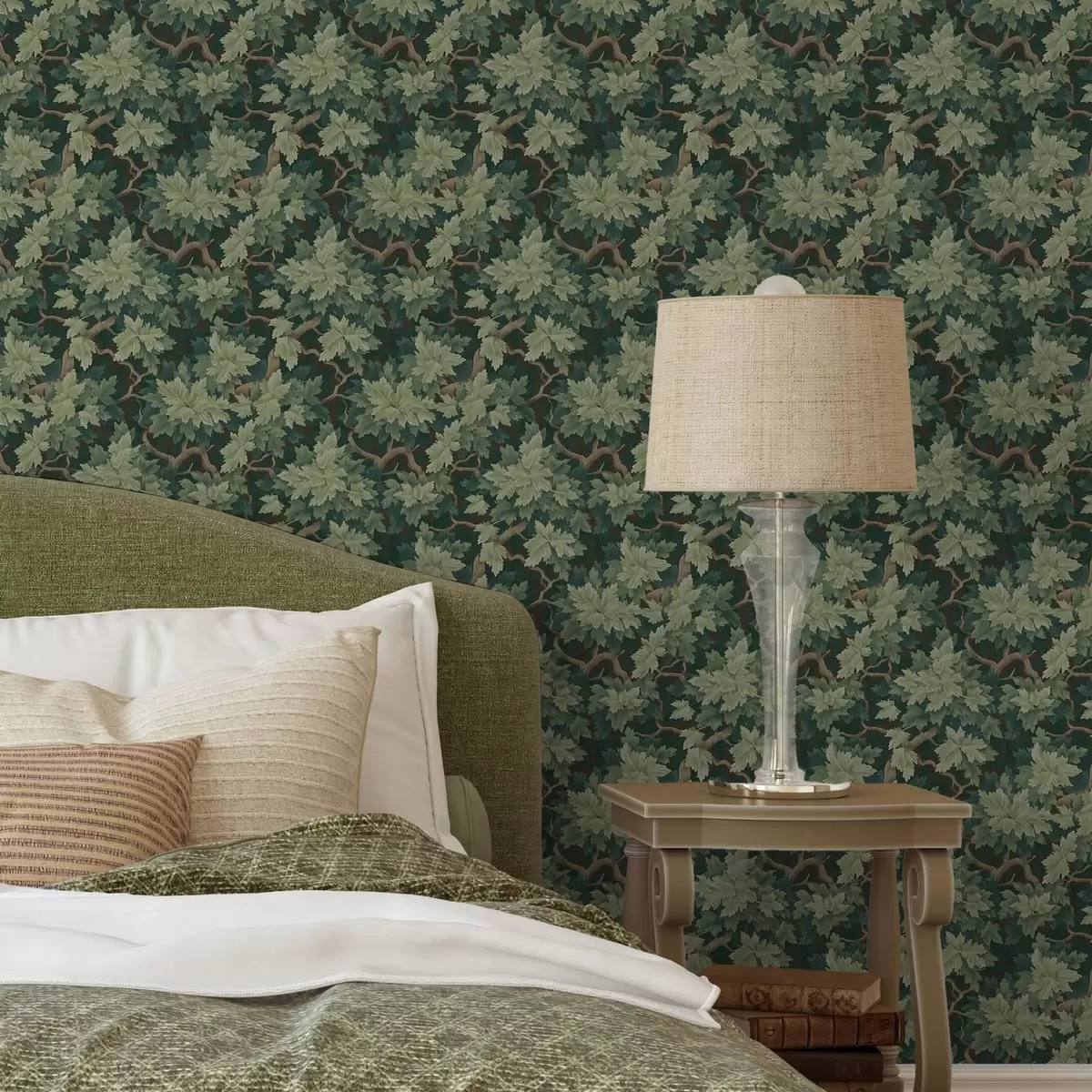 Papel de parede Folhas de carvalho em um fundo verde Nr. a00151