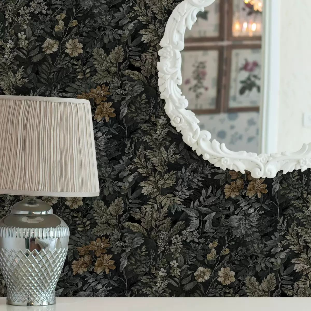 Papel de parede Estampa escura com flores silvestres Nr. a00159