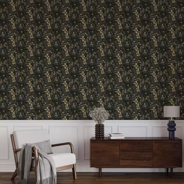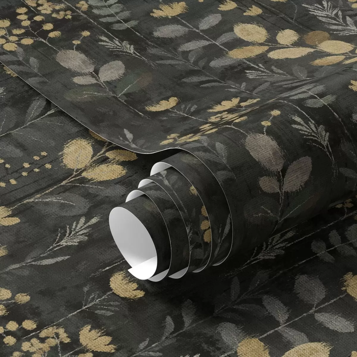 Papel de parede Padrão floral em tons de cinza e amarelo a00163