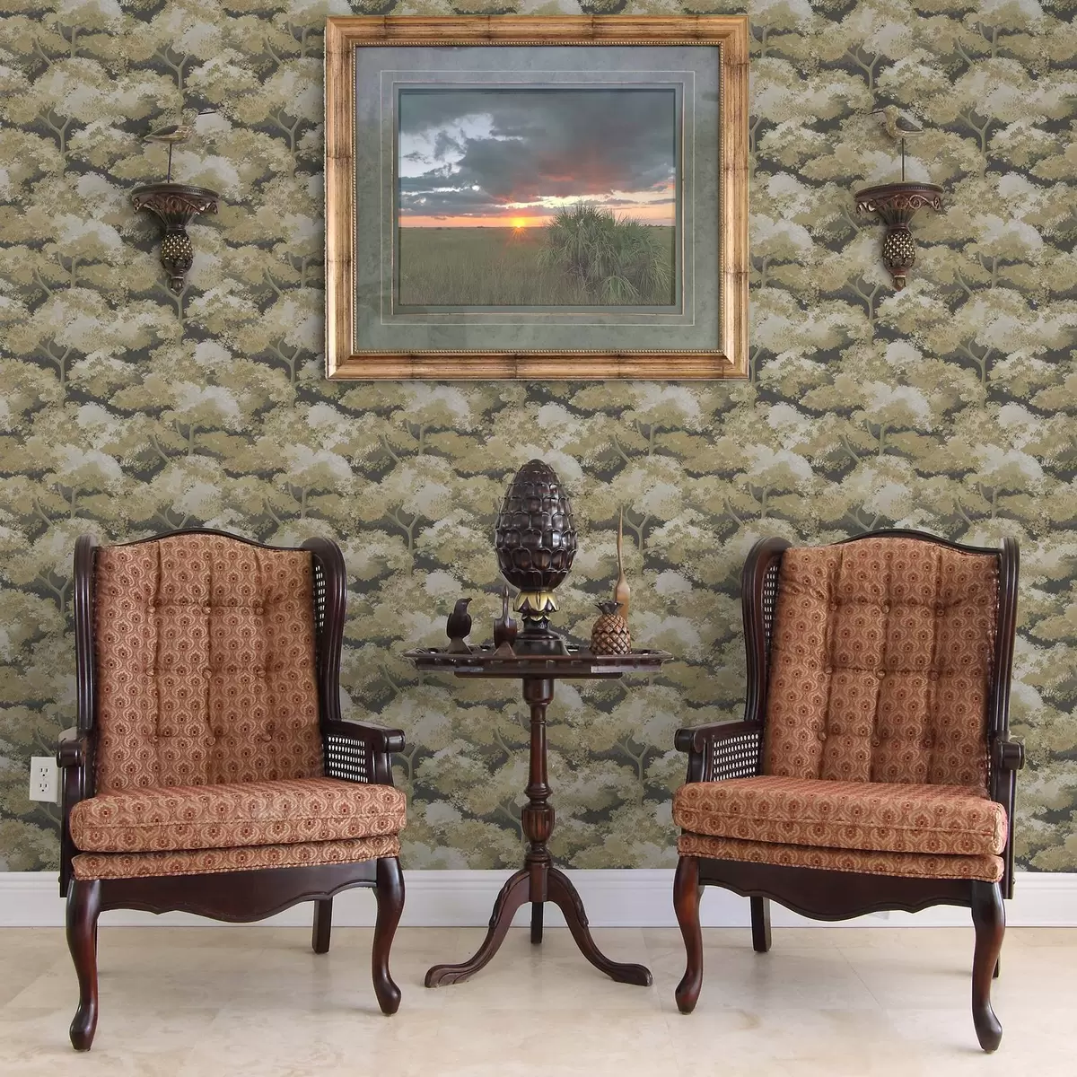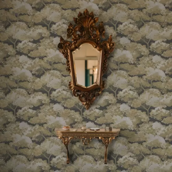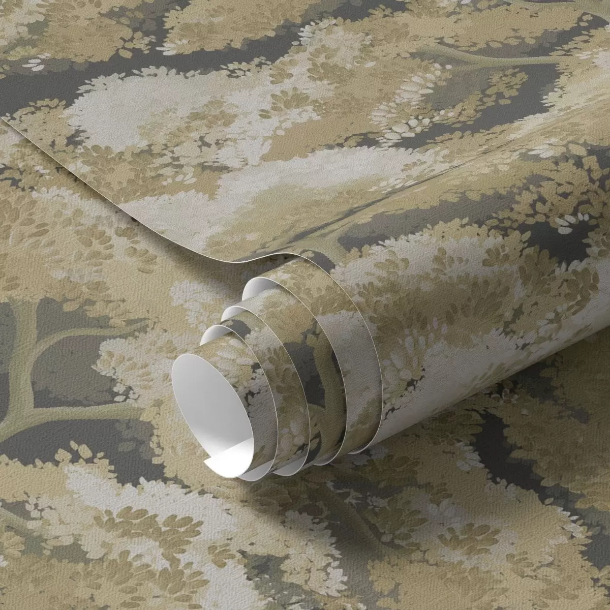 Papel de parede Padrão de floresta escura com árvores em cores quentes Nr. a00170