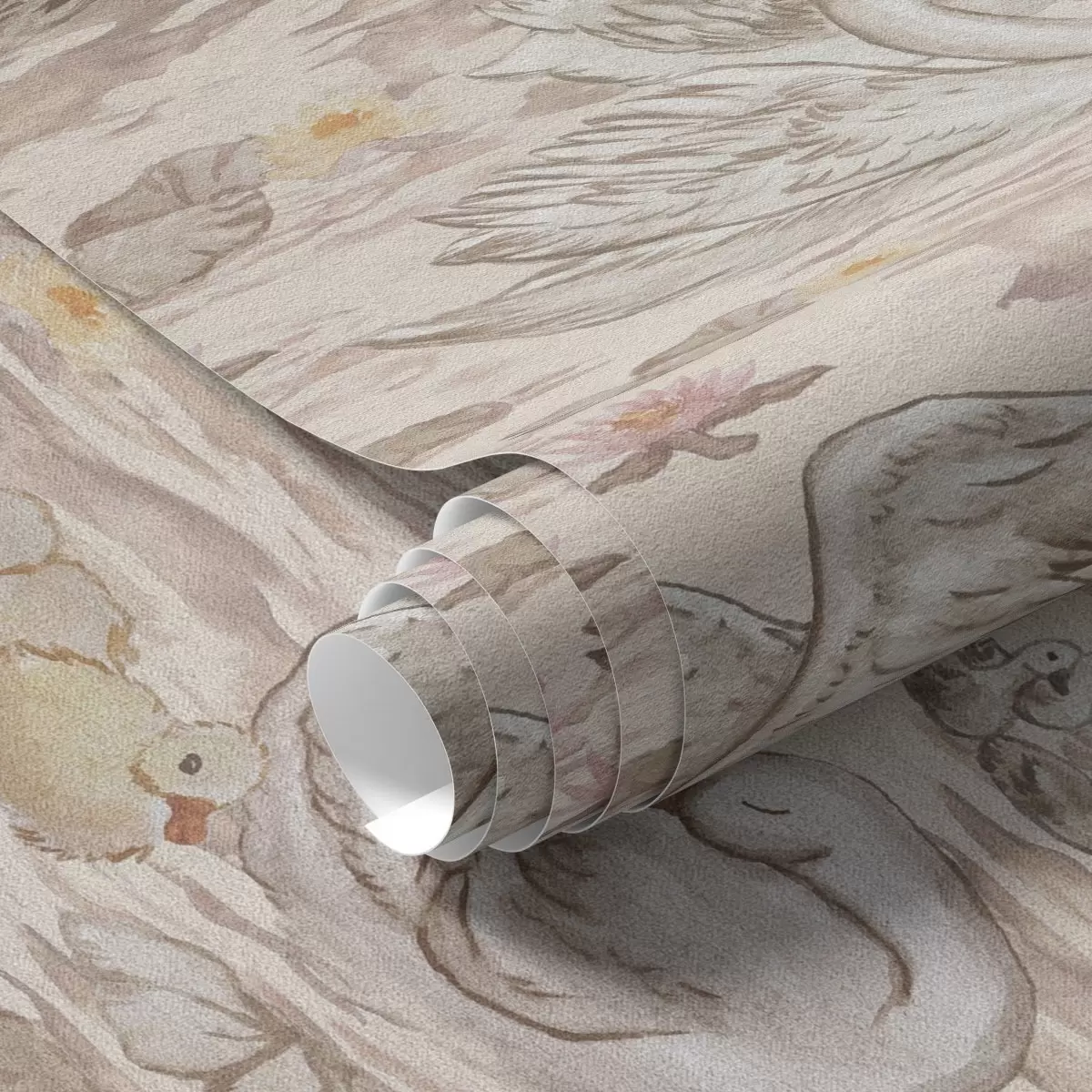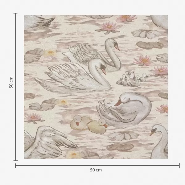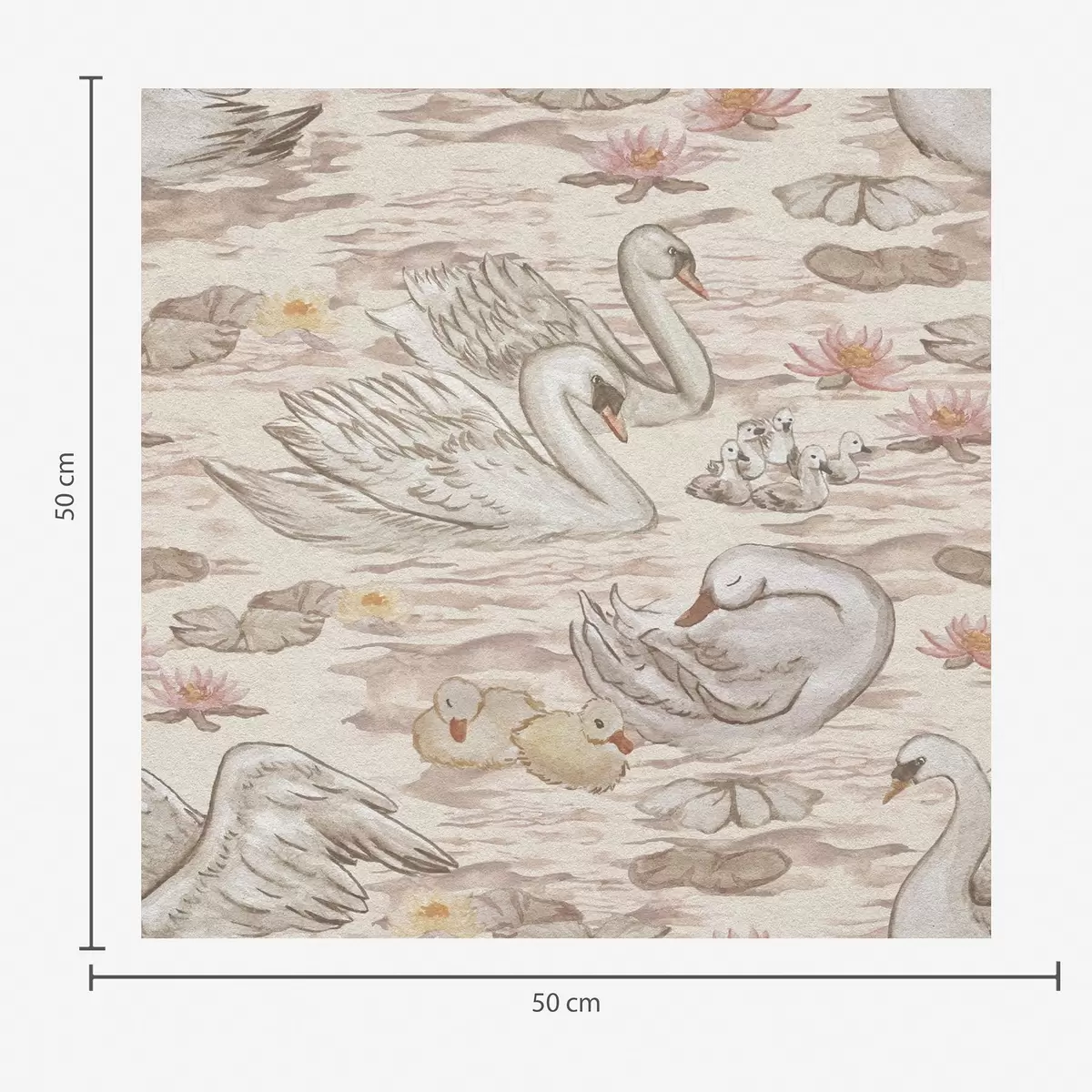 Papel de parede Cisnes com filhotes em um fundo rosa com nenúfares Nr. a00176