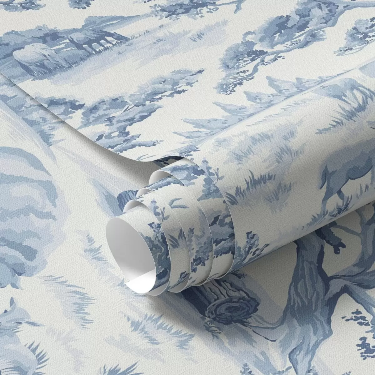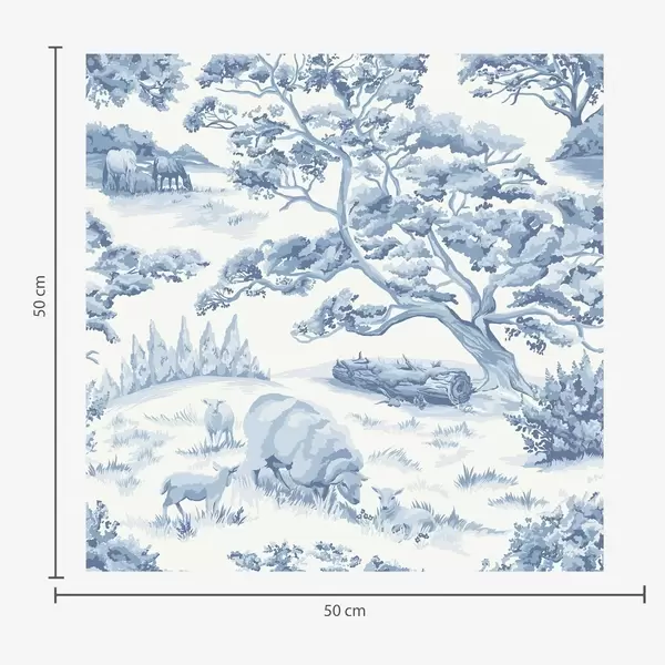 Papel de parede Paisagem rural em tons de azul com ovelhas e árvores Nr. a00178