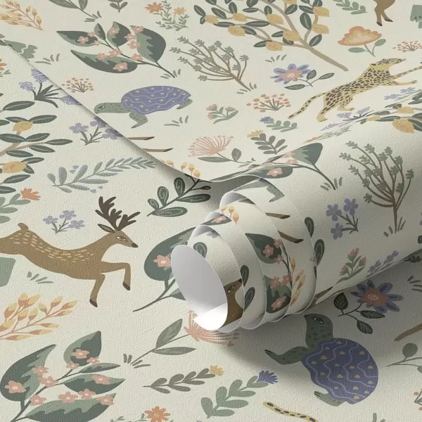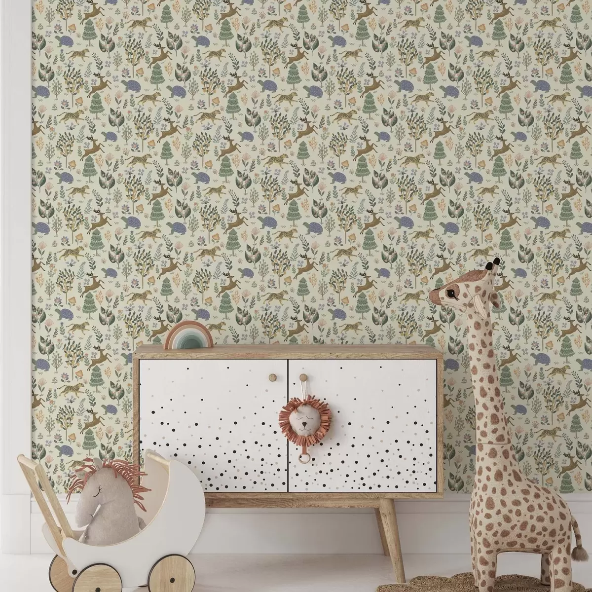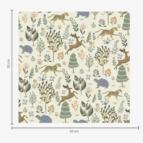Papel de parede Ilustração retrô com leopardos, árvores e veados Nr. a00184