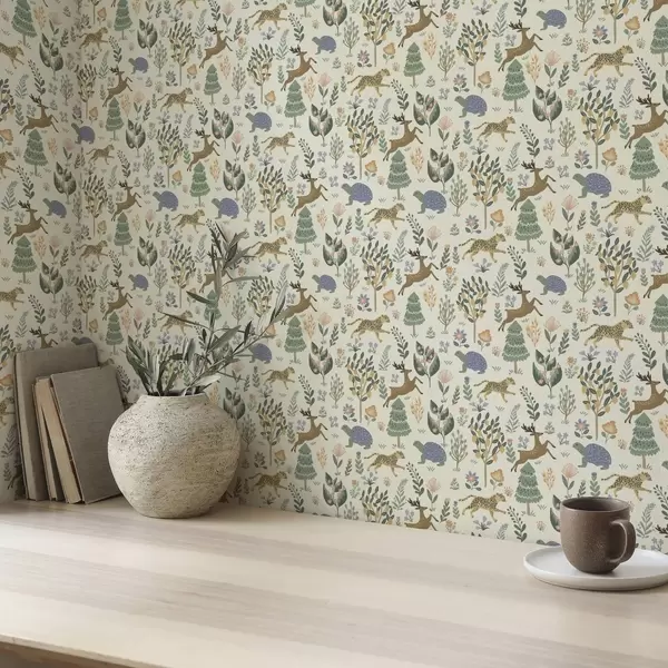 Papel de parede Ilustração retrô com leopardos, árvores e veados Nr. a00184