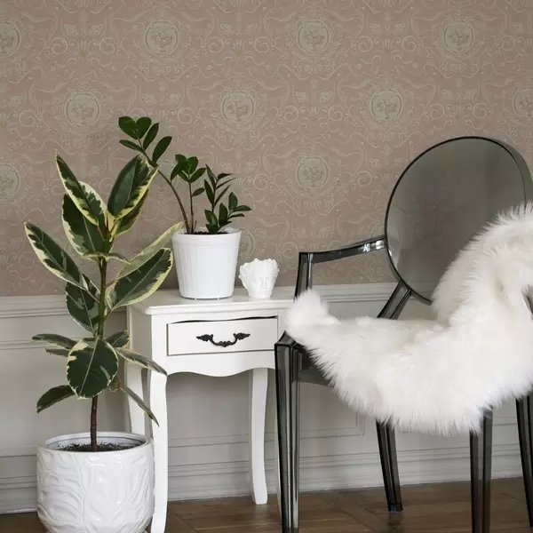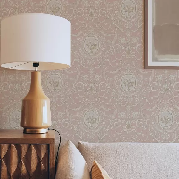Papel de parede Padrão clássico rosa com medalhões e flores Nr. a00185