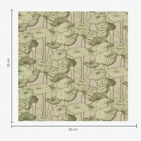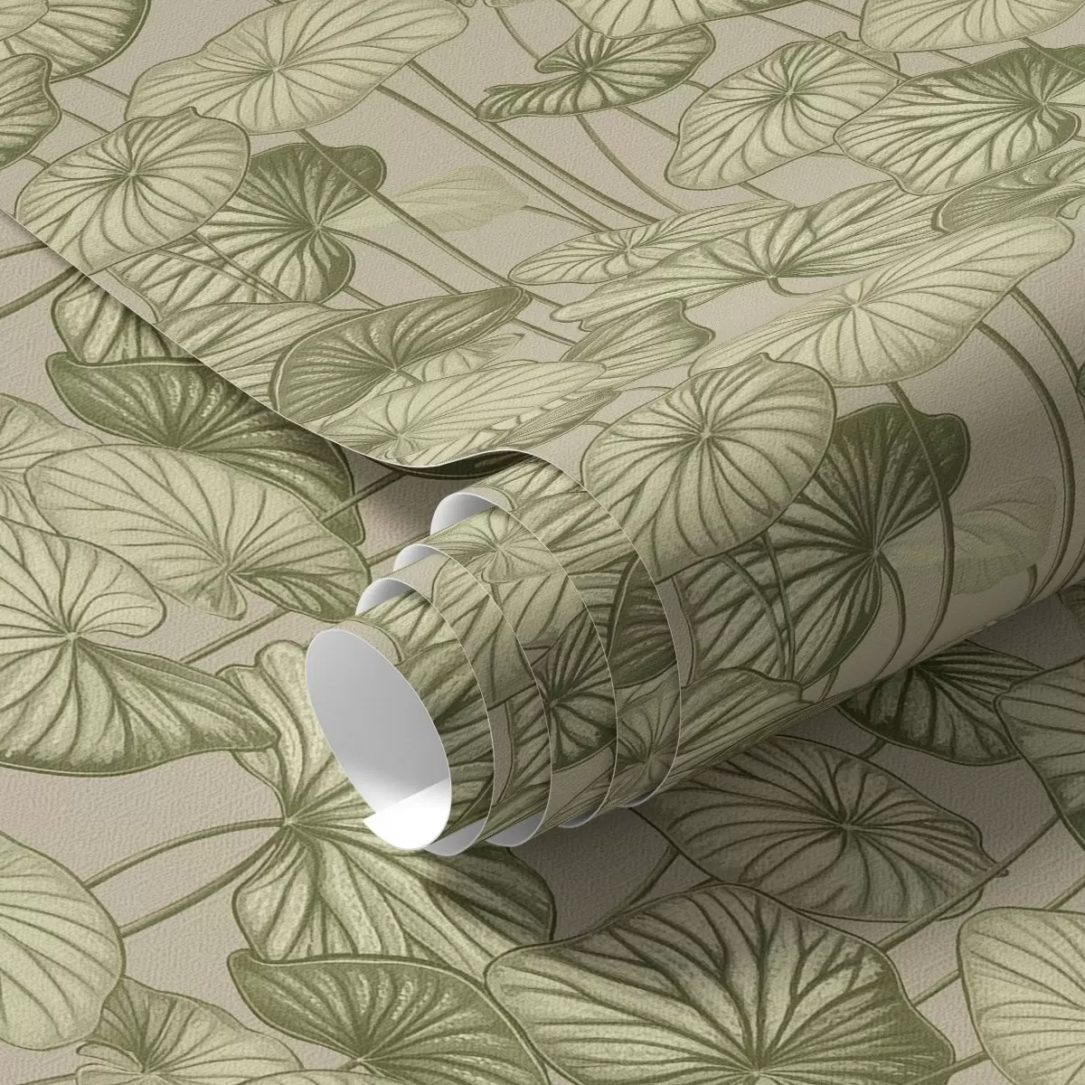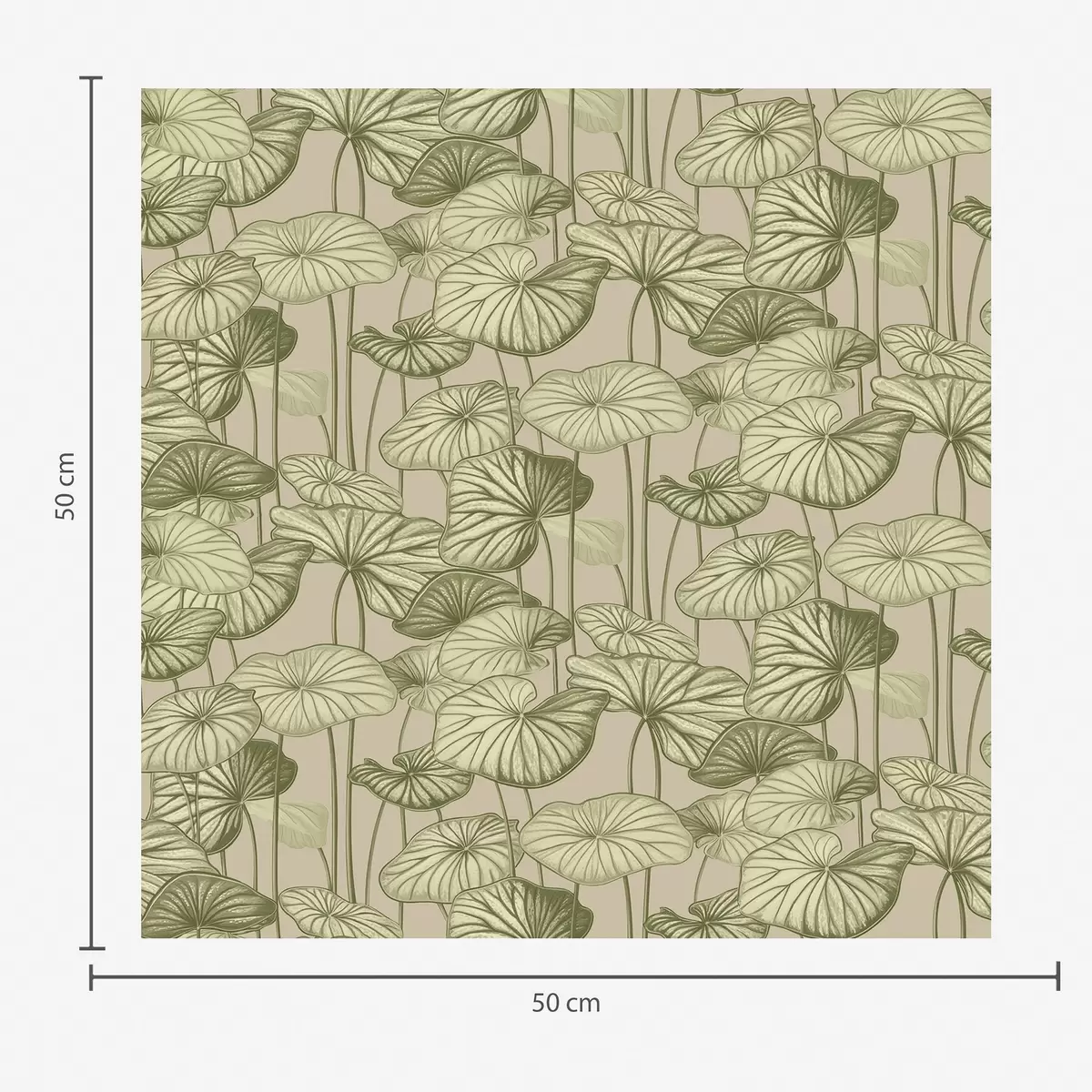 Papel de parede Gráfico de folhas de lótus em estilo retrô em um fundo bege Nr. a00188