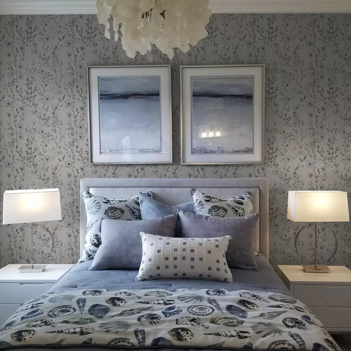 Papel de parede Florística em aquarela azul e cinza sobre fundo neutro Nr. a00198