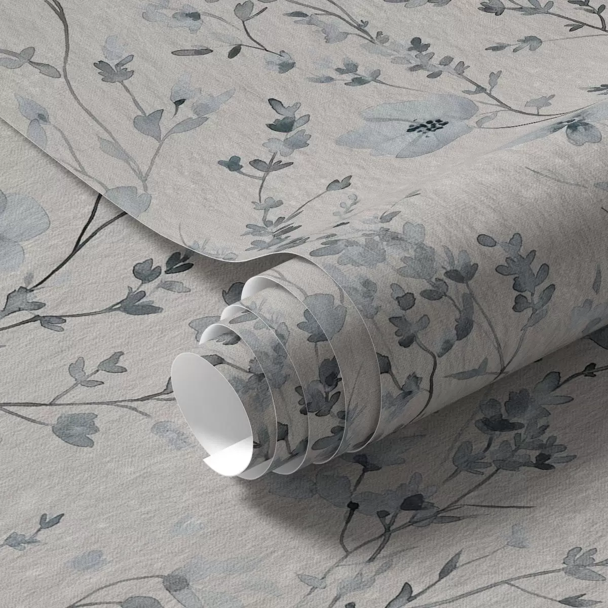 Papel de parede Florística em aquarela azul e cinza sobre fundo neutro Nr. a00198